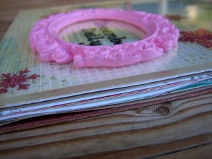 1. Thank you ladies! I got the pink frame from micheals last year, it was in the dollar section. It had a backing on it to be used like a reagular frame but I just pulled it off so the back was flat.